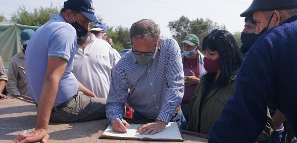 En este marco, el Ministerio se comprometió a poner al servicio del sistema de riego de la zona dos camionetas; reemplazar al sifón que fue dañado en dos oportunidades en las crecidas del año pasado, con el puente canal sobre el Río Miraflores, el cual comenzará su montaje el mes de noviembre y su puesta en funcionamiento a fin de año; y acelerar los trabajos para reemplazar la traza del llamado “canal de la muerte” por la peligrosidad que representa.