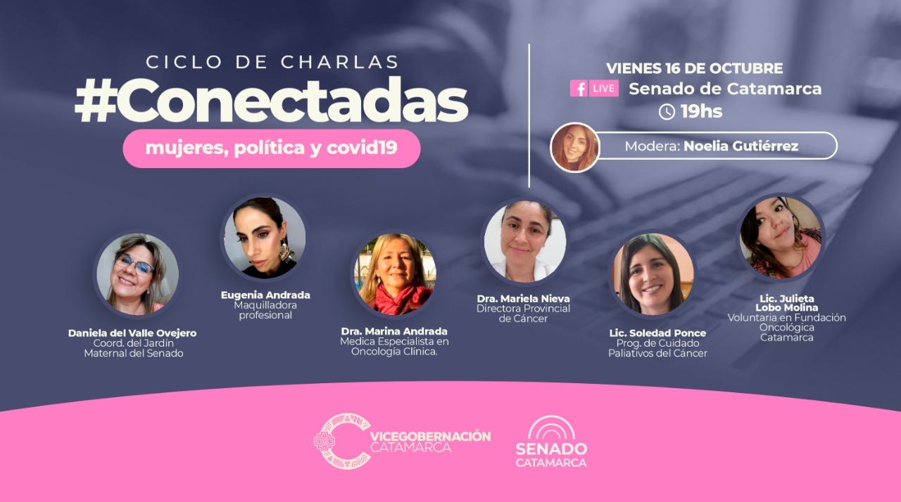Bajo la moderación de Noelia Gutiérrez; la Dra. Marina Andrada, Médica Cirujana especialista en Oncología Clínica y Diputada provincial; Daniela del Valle Ovejero, Coordinadora del Jardín Maternal de la Cámara de Senadores y Postgrado en Cuidados Paliativos y Psico-Socio-Oncología; la Lic. Julieta Molina, Voluntaria en Fundación oncológica Catamarca; la Dra. Mariela Nieva, Directora Provincial de Cáncer; Eugenia Andrada, maquilladora terapéutica para pacientes oncológicos; y la Lic. Soledad Ponce, Ref. Provincial del Programa de Cuidado Paliativos del Cáncer, intercambiarán sus ideas y experiencias bajo la consigna “Mujeres en la lucha contra el cáncer de Mama”.