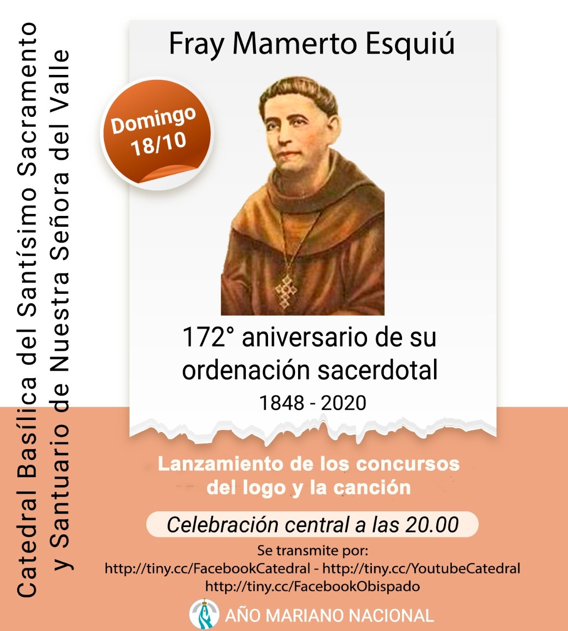 La Iglesia Diocesana de Catamarca recordará este acontecimiento con la celebración de la Santa Misa central a las 20, en la Catedral Basílica y Santuario de Nuestra Señora del Valle.