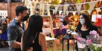 La secretaria de Gestión Cultural, Daiana Roldán recorrió la feria el sábado y entregó flores a las expositoras madres, como homenaje por su día.