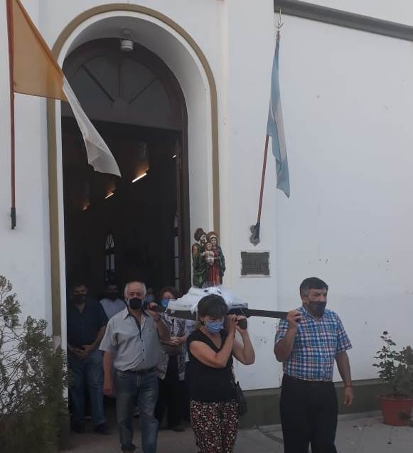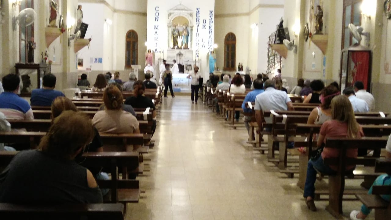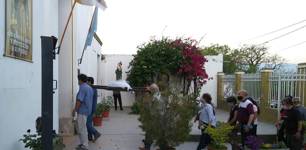 La procesión se realizó alrededor de la plaza ubicada frente al templo parroquial, donde luego se celebró la Santa Misa presidida por el Pbro. Eduardo López Márquez y concelebrada por el párroco, Pbro. Pablo Batallán, quien dio gracias a Dios por los 40 años de ministerio sacerdotal. También en esta Eucaristía se recordó el aniversario de ordenación sacerdotal del beato Fray Mamerto Esquiú y el Día de la Madre.