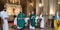 Fray Pablo Reartes presidió la Eucaristía, en la que, entre otros conceptos, manifestó que “para fray Mamerto Esquiú el sacerdocio fue su consagración definitiva a Cristo, y lo atestiguan su amor y reverencia a la misma y sus escritos. Su primera misa la celebró en homenaje a sus padres ya fallecidos. Éste es otro aspecto de la santidad de Fray Mamerto, su amor a Cristo Eucarístico, a quien llamaba ‘El Dios de las Naciones’".