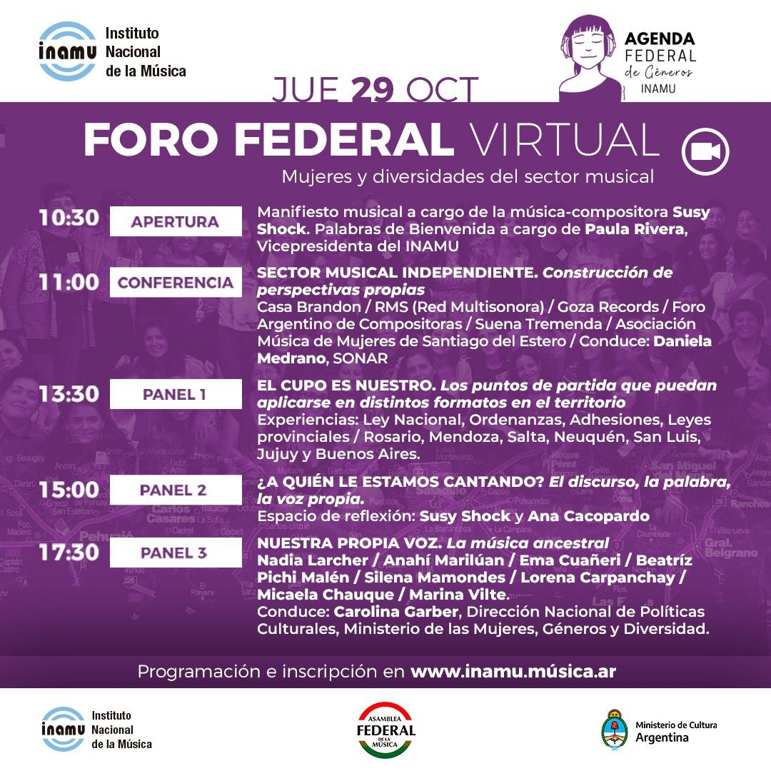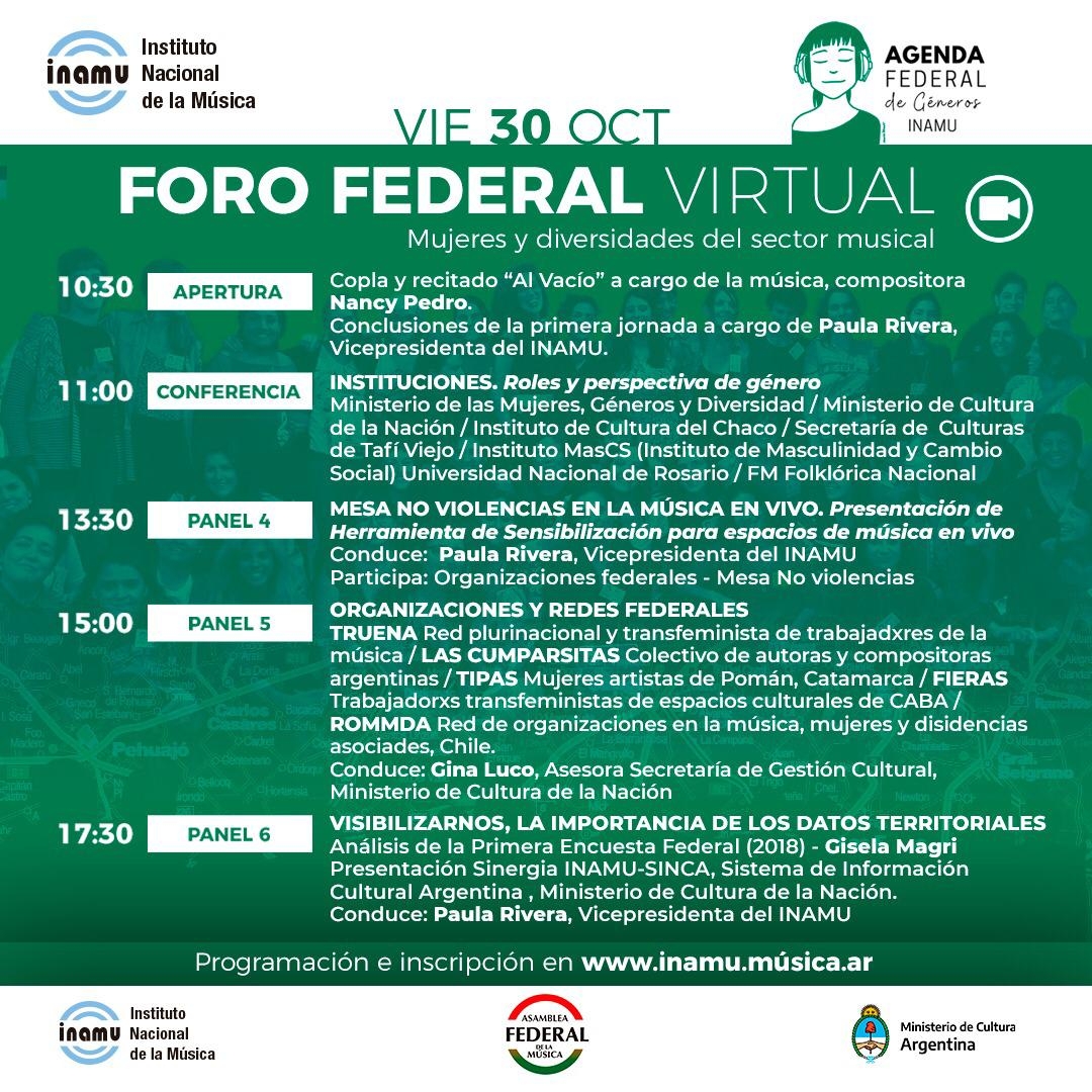 Por mayor información, programación e Inscripción consultar en: www.inamu.musica.ar/foro-agendadegeneros.