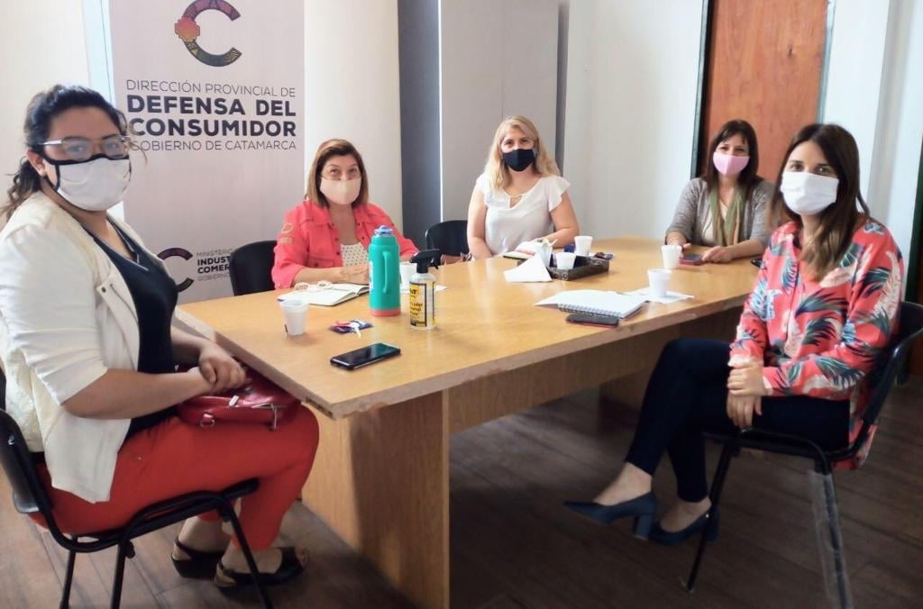 La directora de Defensa del Consumidor, Florencia Agüero Birocco, recibió a Azucena Luna, presidenta de Mujeres de la UC; Cintia Galarza, responsable del Área de Capacitaciones; María Marta Cantarell, responsable del Área de Estadísticas y Planificación, y Luciana Bazán, presidenta de Jóvenes Empresarias de UC.