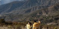 El director Provincial de Defensa Civil, Martin Castelli, realiza la coordinación logística con el Intendente de Paclín, Eduardo Menecier y el delegado Waldo Montalbán, para el arribo de una cuadrilla de la Brigada de Lucha Contra Incendios Forestales a la localidad de Las Lajas durante la mañana del día lunes, desde donde realizarán el ascenso hasta el foco ígneo.