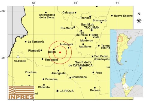 Epicentro: 122 km al NO de San F. Del Valle De Catamarca; 181 km al N de La Rioja; 33 km al SE de Belén -27.782 (lat) -66.723 (long)