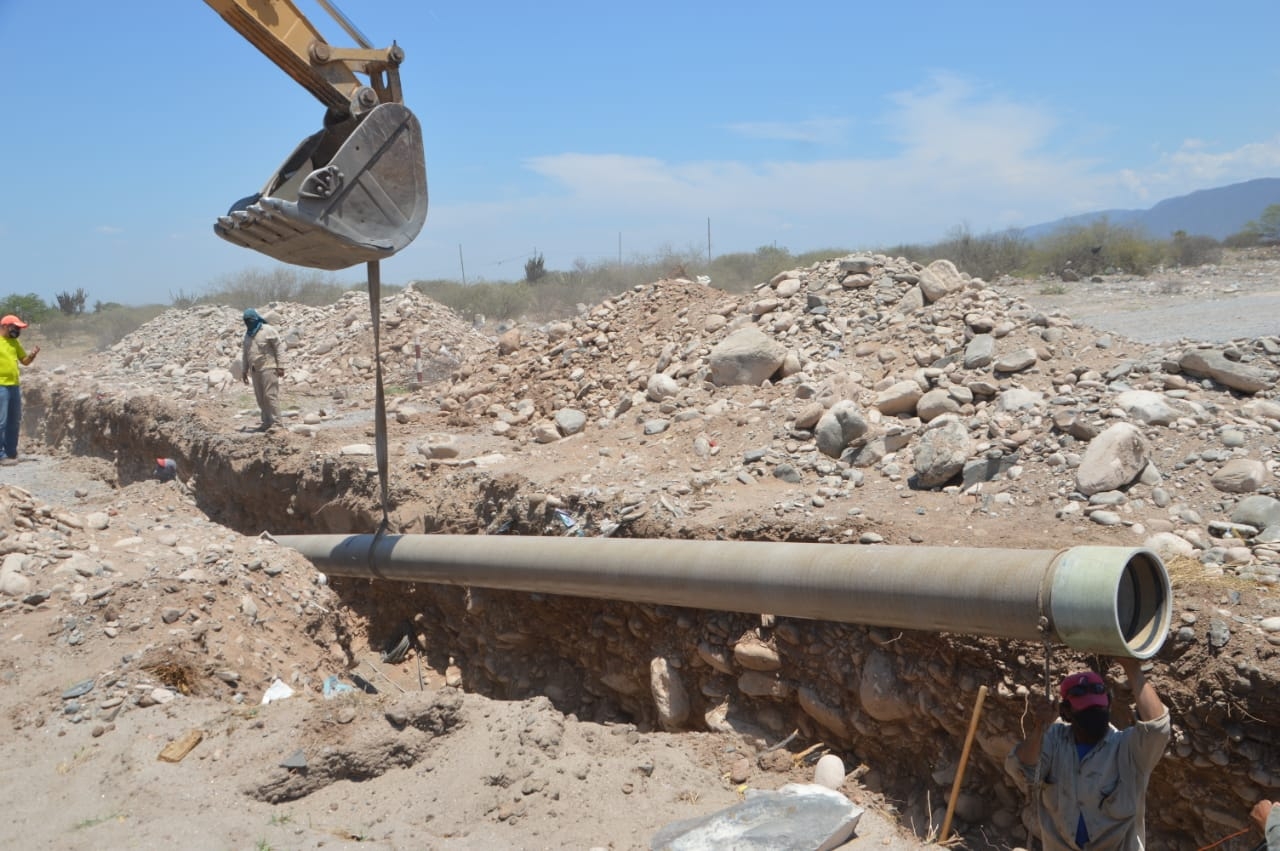Se reemplazan más de 1200 metros de cañería PVC por PRFV 350 mm. Clase 10 desde Barrio Inti Huasi hasta Cisterna 1000 viv.