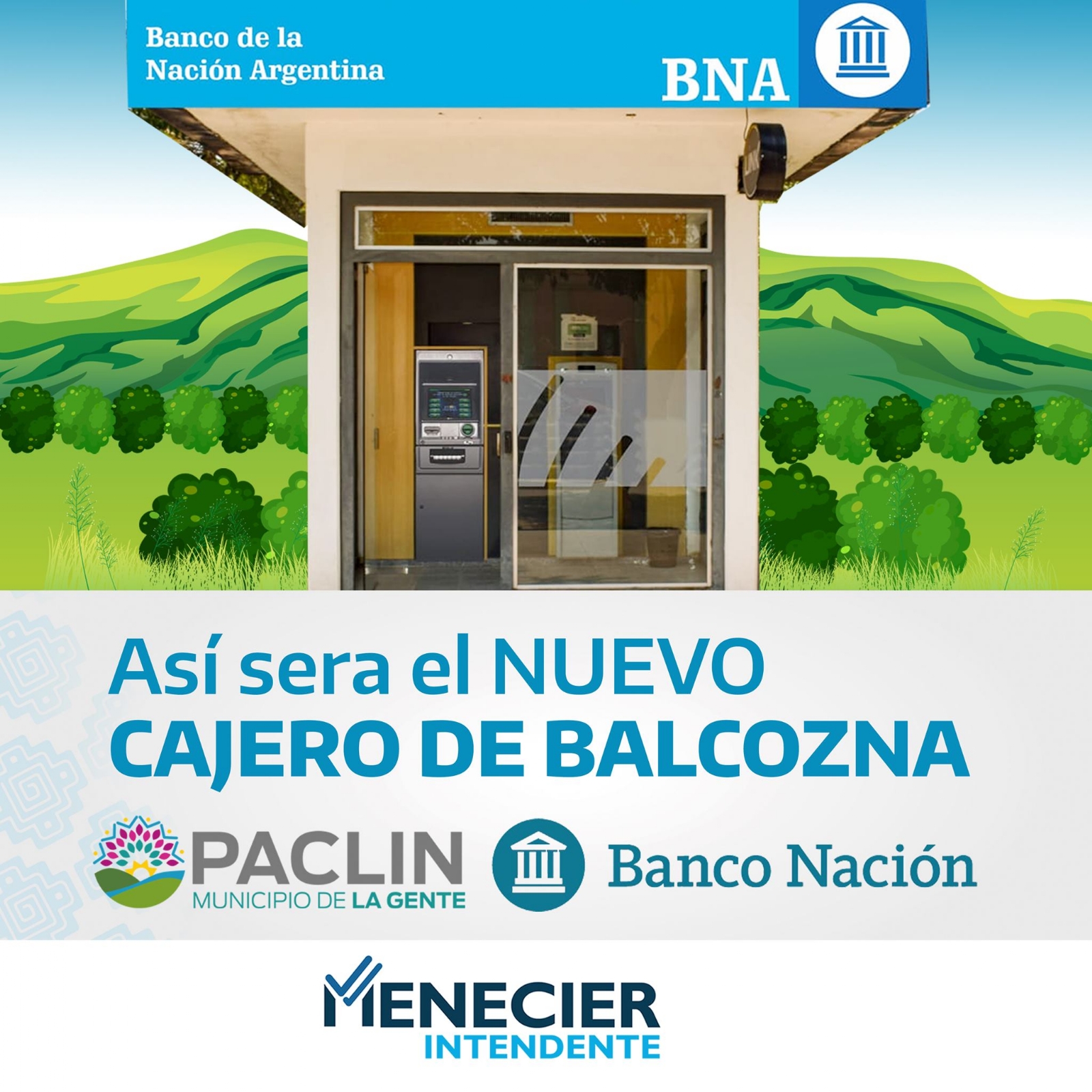 El municipio de Paclín realizó la gestión ante las autoridades del Banco Nación. Se trata de un histórico acontecimiento, ya que será el primer cajero automático en la localidad de Balcozna.