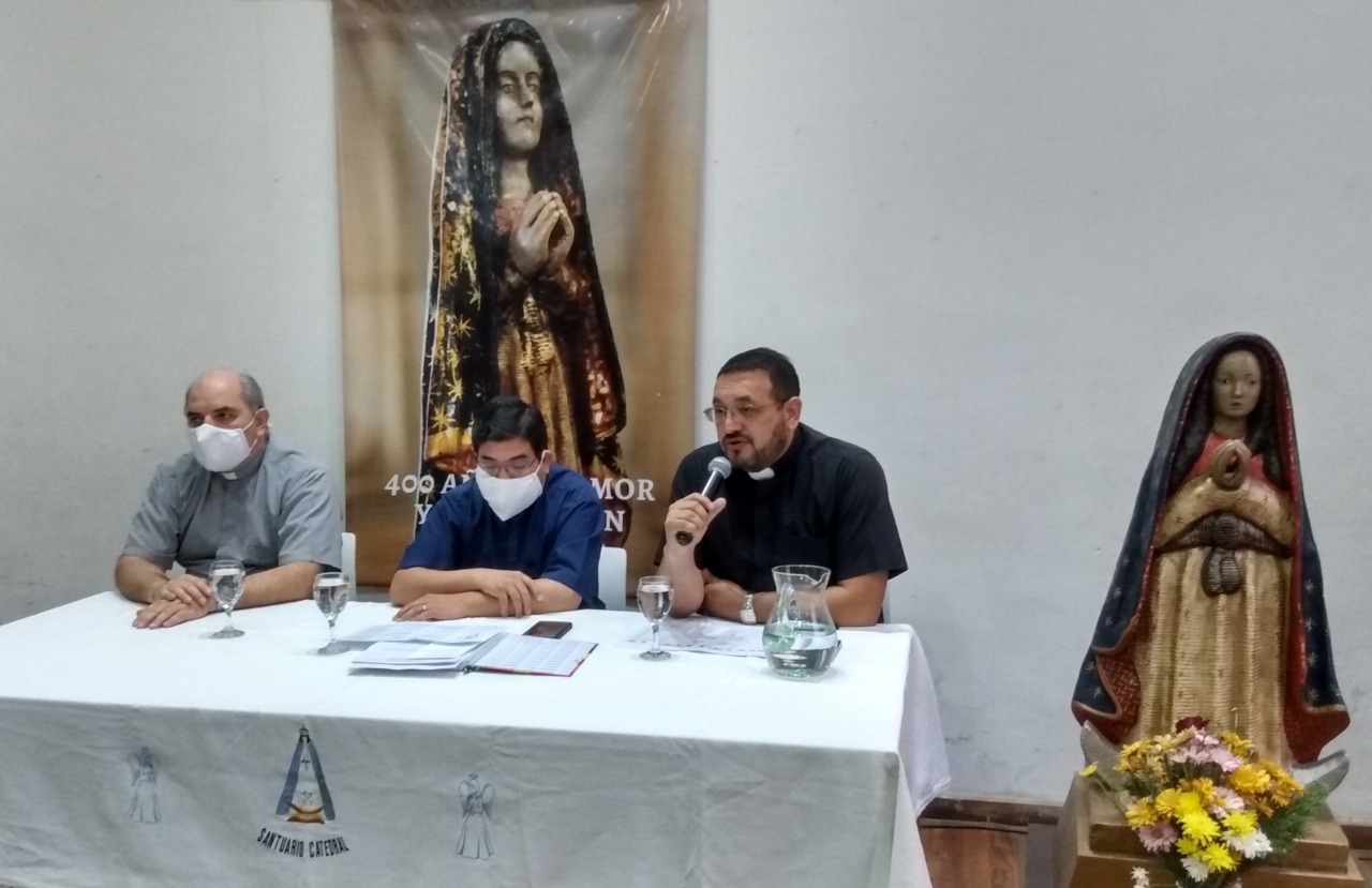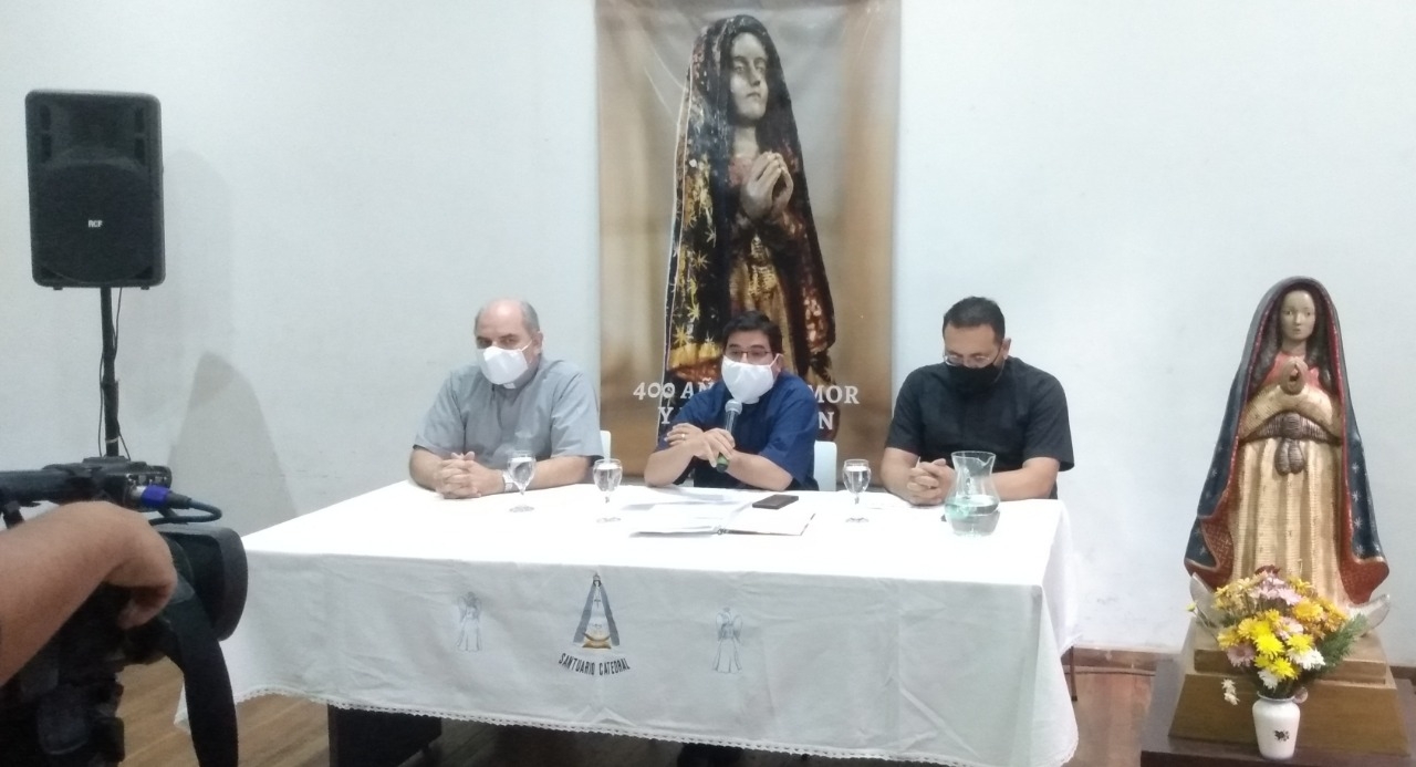 Los detalles de la modalidad en que se desarrollarán los distintos actos litúrgicos y otras actividades, teniendo en cuenta la situación sanitaria por la pandemia, fueron brindados en el marco de una conferencia de prensa, realizada durante la mañana del miércoles 18 de noviembre, en el Auditorio del Museo de la Virgen. La misma estuvo a cargo del Pbro. Gustavo Flores, Rector de la Catedral Basílica y Santuario de Nuestra Señora del Valle; el Pbro. Julio Murúa y el Pbro. Marcelo Amaya, Coordinador y Secretario General del Espacio de Animación y Encuentro Virtual, respectivamente.