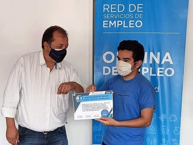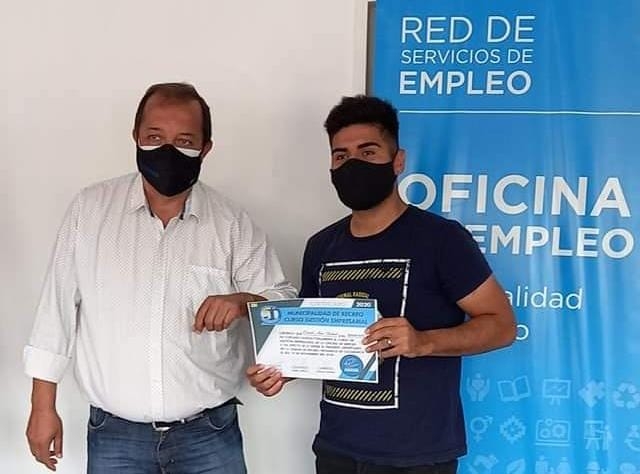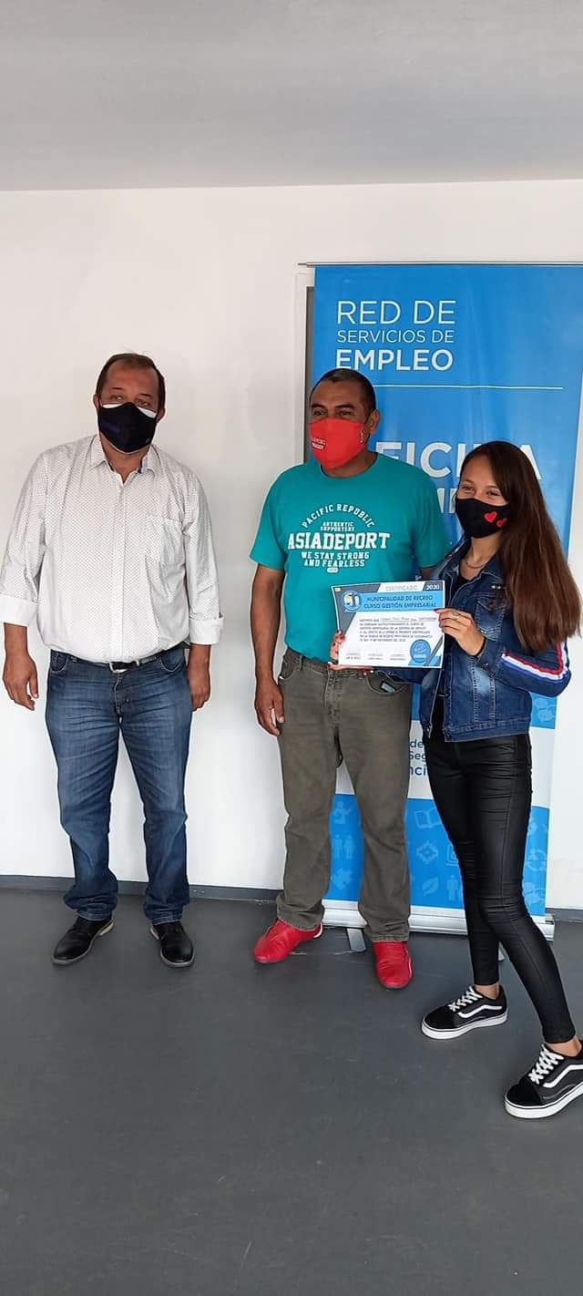 El intendente Luís Polti junto al referente de la Oficina de Empleo local, Javier Zappella, felicitaron a todos los emprendedores y los instaron a seguir trabajando para fortalecer sus negocios.