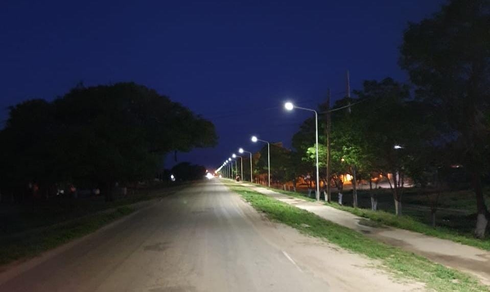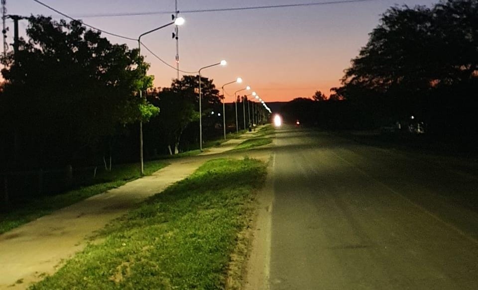 La nueva obra se llevó a cabo sobre Ruta Provincial N° 2, e ilumina también la senda peatonal, cambiando completamente en paisaje del lugar.