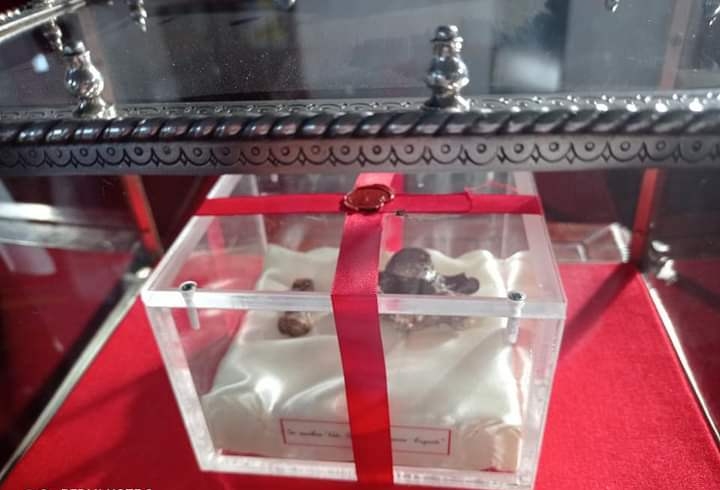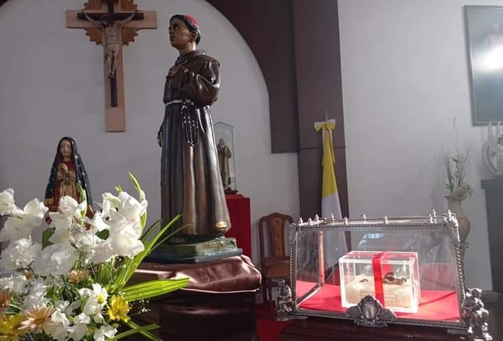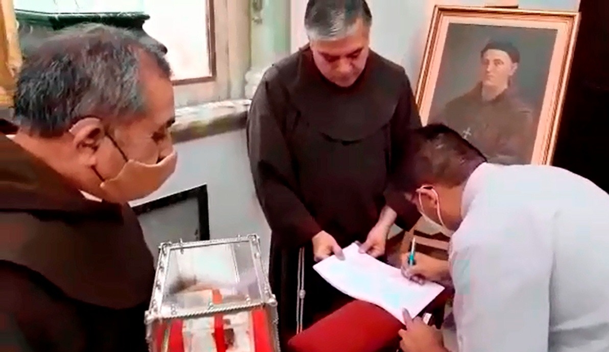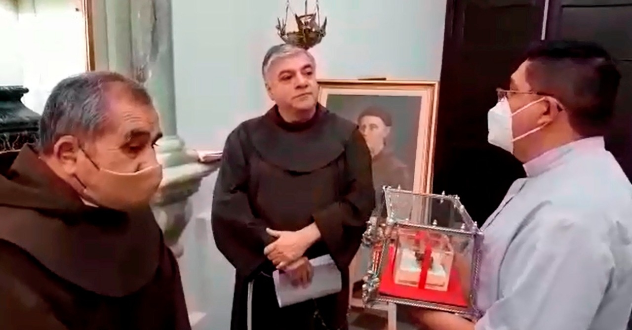 Durante un breve acto, el Guardián del Convento, Fray Eligio Bazán, entregó las reliquias al P. Granillo, estando presentes fray Pablo Reartes, y Daniel Nieva, acompañando al P. Granillo.