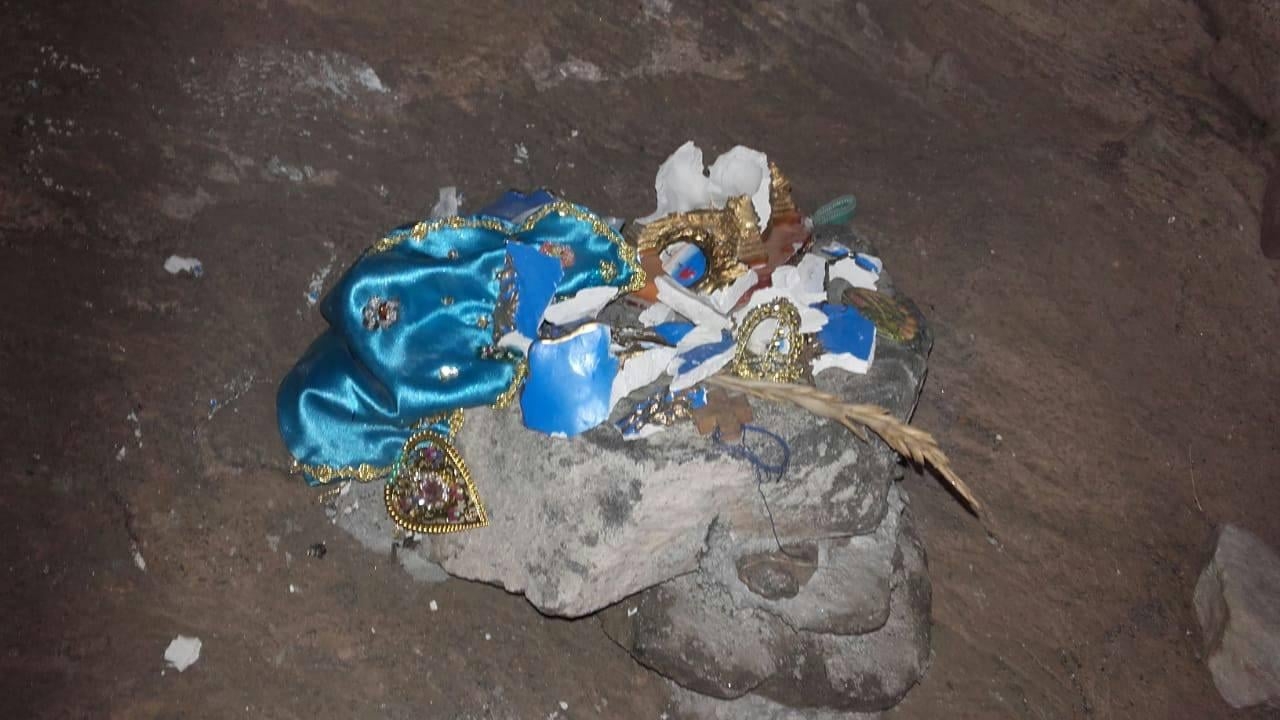 Aparentemente personas desconocidas, no tuvieron la mejor idea que destruir la imagen. “Repudiamos es acto de total cobardía y maldad, ya que la misma se encontraba, apoyada en una pequeña base de cemento y a la intemperie de todo y solo resguardada bajo su natural gruta de rocas”, agrega en el posteo.