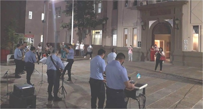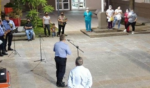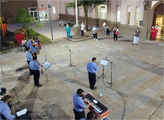 Al finalizar, el Director de la Banda de Música, Subcomisario Prof. Aldo Mario Castelli, hizo uso de la palabra y agradeció, en nombre del Jefe de Policía y del Comando la Institución, el coraje y la entereza que demuestran en la tarea encomendada, y luego, respetando los protocolos establecidos, ejecutaron piezas del cancionero popular argentino.