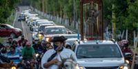 La cita para recibir la Imagen fue a las 18.30 en la rotonda de ingreso al departamento Fray Mamerto Esquiú, desde donde fue llevada en caravana de automóviles, motos y bicicletas, por Ruta Nº 41, hasta el templete ubicado en la localidad de San José de Piedra Blanca. A lo largo del recorrido se observaban las calles adornadas con flores y gallardetes, como muestra de la alegría por este momento único, que congregó a un número importante de fieles, quienes dijeron presente, respetando el distanciamiento y las medidas de prevención de Covid-19.