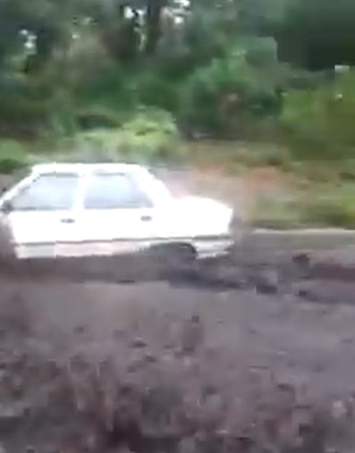 En el lugar, había un auto estacionado que, por la fuerza del agua, quedó casi tapado y fue arrastrado por la corriente.