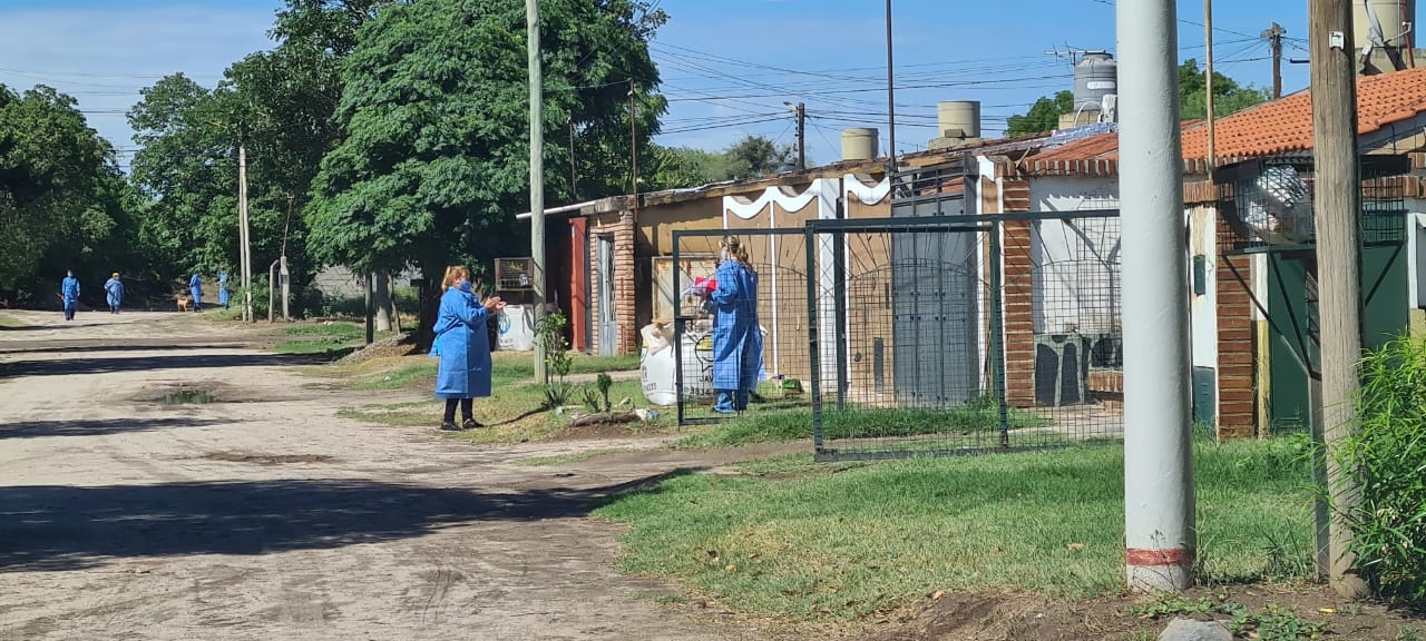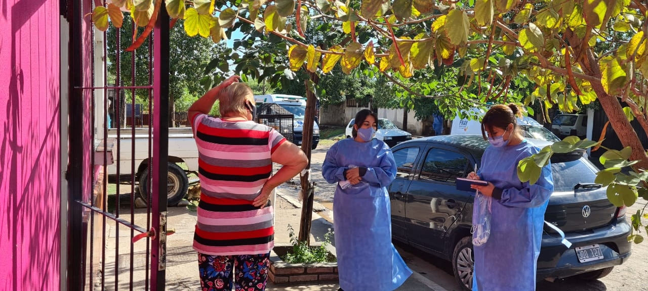El equipo de salud recorrió el barrio y en cada visita se realizó control de la temperatura y registro de síntomas compatibles con COVID19 para detectar casos positivos.