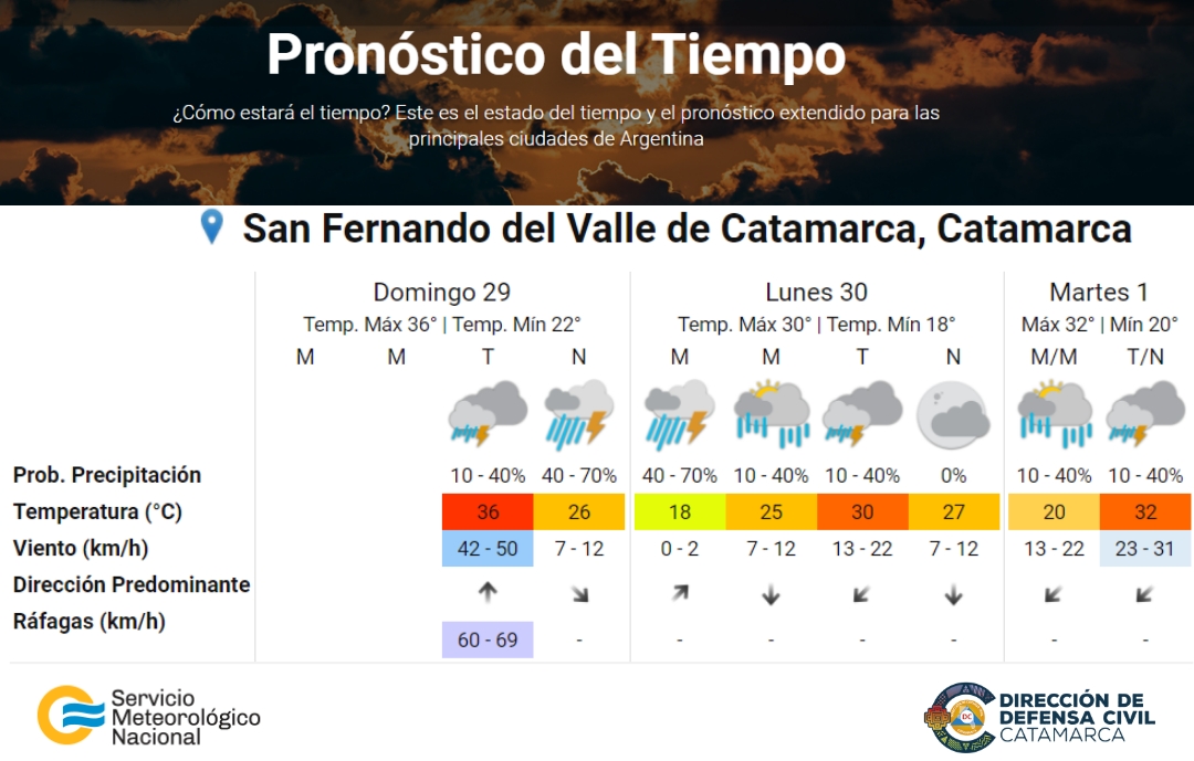 ➡️PRONÓSTICO: Según el pronóstico del tiempo del Servicio Meteorológico Nacional durante la tarde de hoy, se esperan vientos de entre 42 y 50 km/h y ráfagas de entre 60 y 69 km/h en nuestra capital y alrededores.