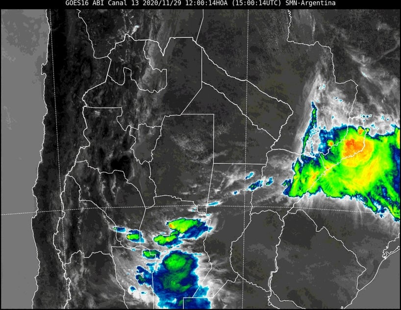 Estas tormentas estarán acompañadas de fuertes ráfagas del sector sur, especialmente entre la tarde y la noche de hoy domingo 29, abundante caída de agua en cortos períodos, fuerte actividad eléctrica y ocasional caída de granizo.