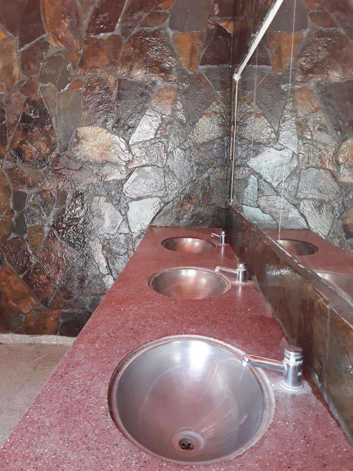 -Refacción de canteros, baños; revestimiento con piedras lajas de la zona, cambio de grifería completa, pintura, instalación eléctrica con luminaria nueva, cambios de cerámicos, sanitarias y aberturas completas.