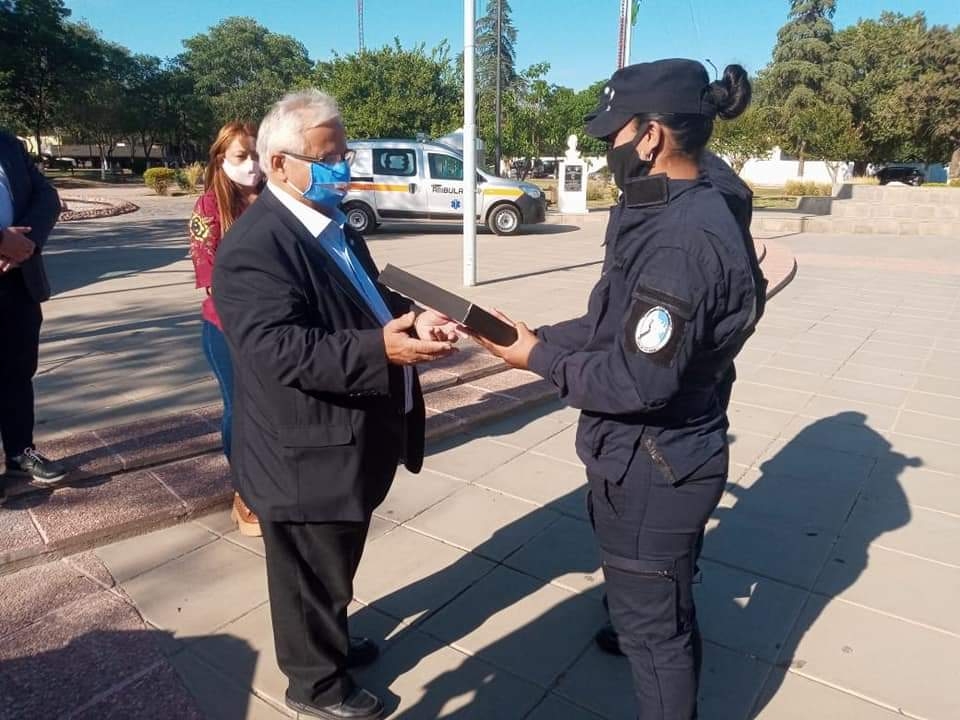 La ceremonia, realizada bajos estrictos controles de distanciamiento y cumpliendo los protocolos de sanidad y seguridad, fue encabeza por el intendente José Pío Carletta, quien estuvo acompañado por el presidente del Concejo Deliberante, Franco Carletta, el senador por el departamento La Paz, Ariel Espinoza, funcionarios municipales, vecinos, directivos de las escuelas de la jurisdicción, la directora y enfermeros del Hospital Zonal de Icaño y la Policía de Catamarca.