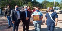 Luego, se hizo la entrega de placas conmemorativas a "nuestros verdaderos héroes, quienes arriesgan sus vidas día a día en los puestos de control, asegurando la protección de todos los vecinos en esta pandemia que se está viviendo a nivel mundial".