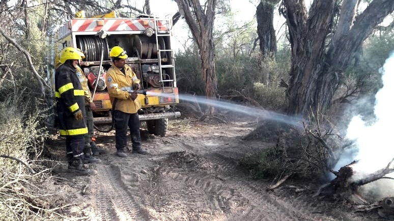 El jefe de la cuadrilla de combatientes, Damián Agüero, informó que “las tareas que realizamos durante todo el día fueron en su mayoría de enfriamiento con mochilas de agua y la autobomba de la Brigada, luego de que una maquina perteneciente al campo afectado realizara brechas de ensanche que delimitarán el incendio”.