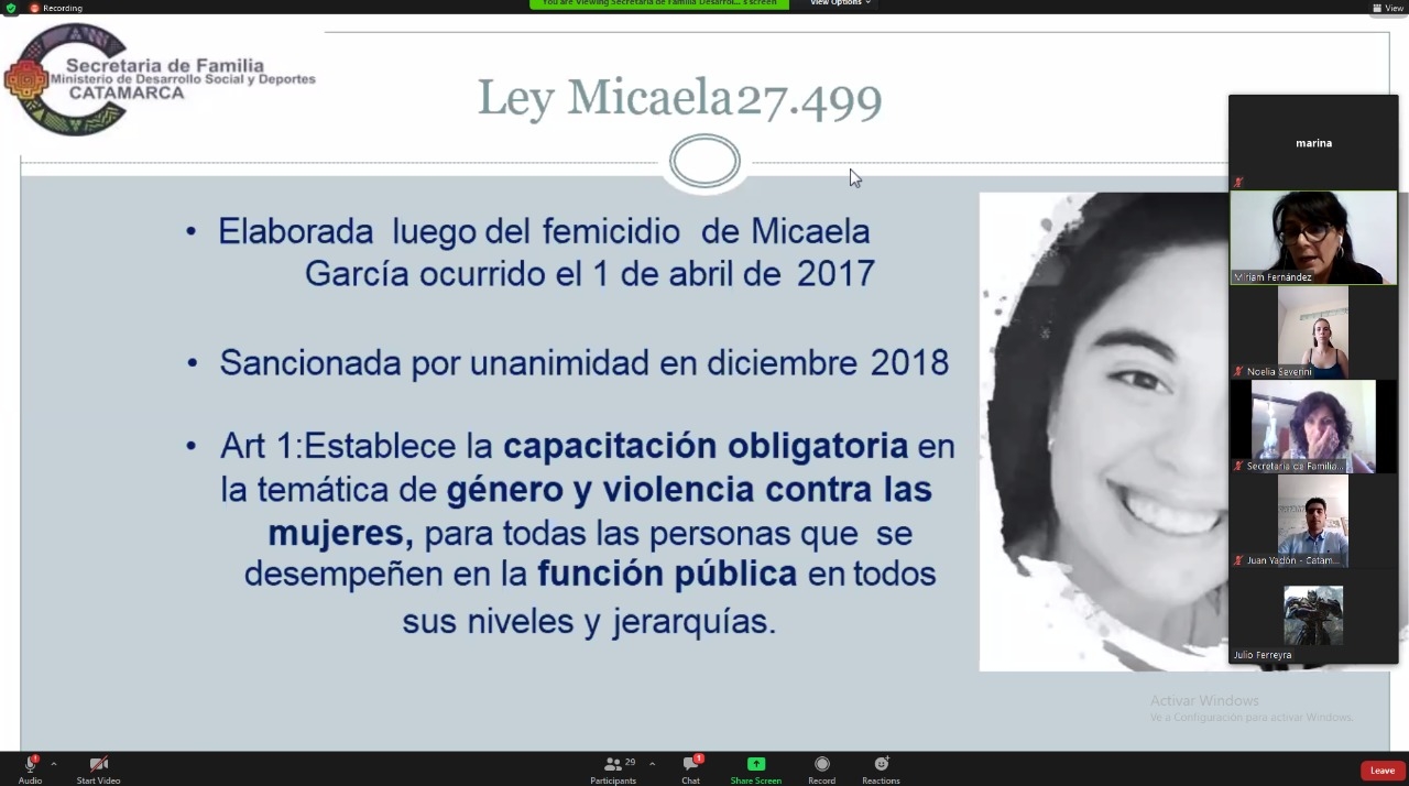 Las profesionales de la Secretaría de Familia, autoridad provincial de aplicación de la Ley 27.499, remarcaron que la importancia de la capacitación es dar cuenta sobre el objetivo de lograr la plena implementación de la Ley, a través de procesos de formación integral, los cuales aporten a la adquisición de herramientas que permitan identificar las desigualdades de género y elaborar estrategias para su erradicación.