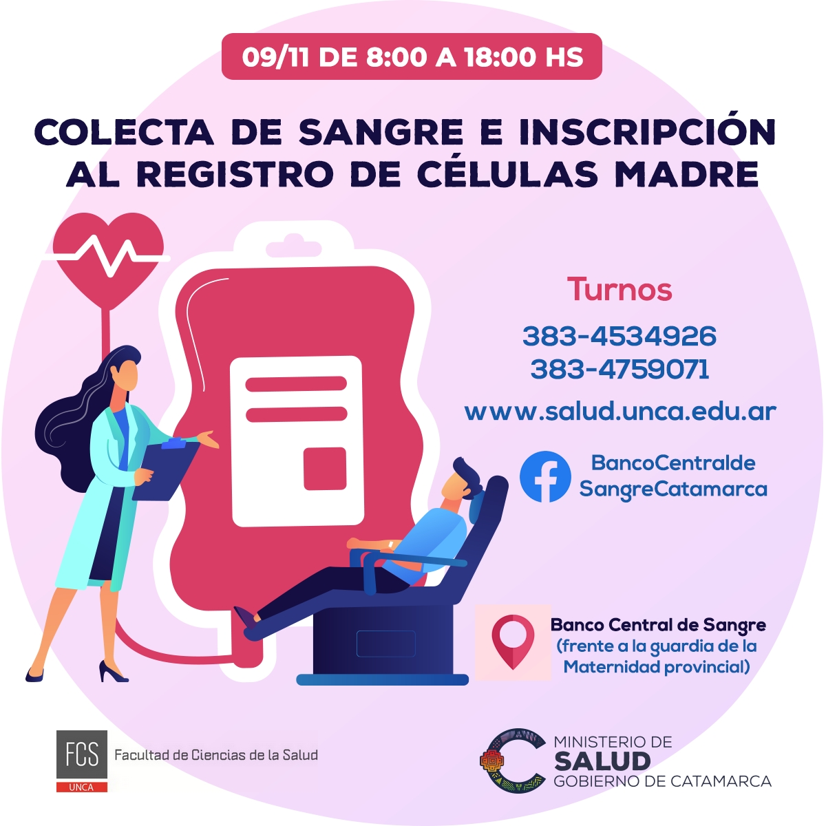 Organizada conjuntamente con la Facultad de Ciencias de la Salud de la UNCa, se realizarán actividades de promoción de la donación voluntaria y habitual de sangre, concientización de la importancia de ser donante habitual, inscripciones al Registro de Células Madre, y atención integral a todas aquellas personas que deseen donar sangre en su día.