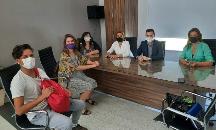 Se reunieron en el Palacio municipal el secretario de Gobierno Fernando Monguillot, la secretaria de Educación Cultura y Deporte, Patricia Saseta, y la directora General de Cultura, Arq. Fabiana Bustos; con representantes de artistas que llegaron hasta la intendencia para solicitar la autorización de eventos culturales con público, respetando los protocolos correspondientes.