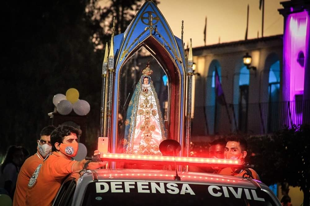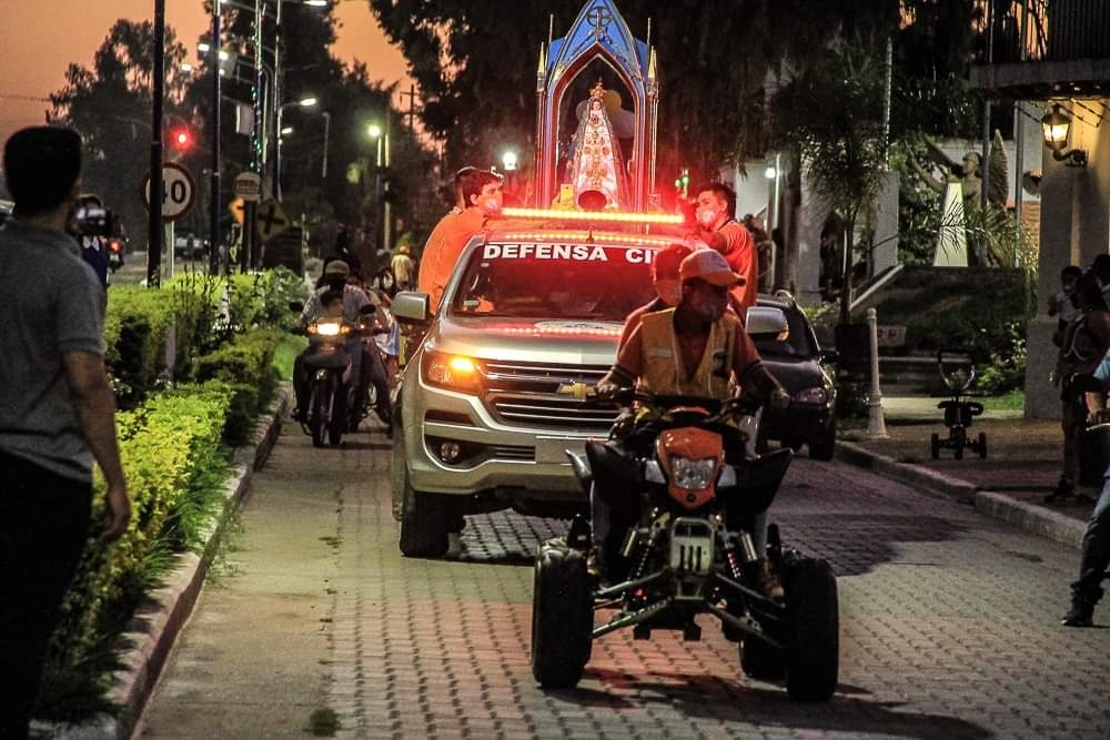 Los vecinos participaron de la Santa Misa y posterior procesión por las calles del sector, ante la imposibilidad de llegar a los pies de la Virgen Morenita en Catamarca por la situación de pandemia.