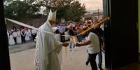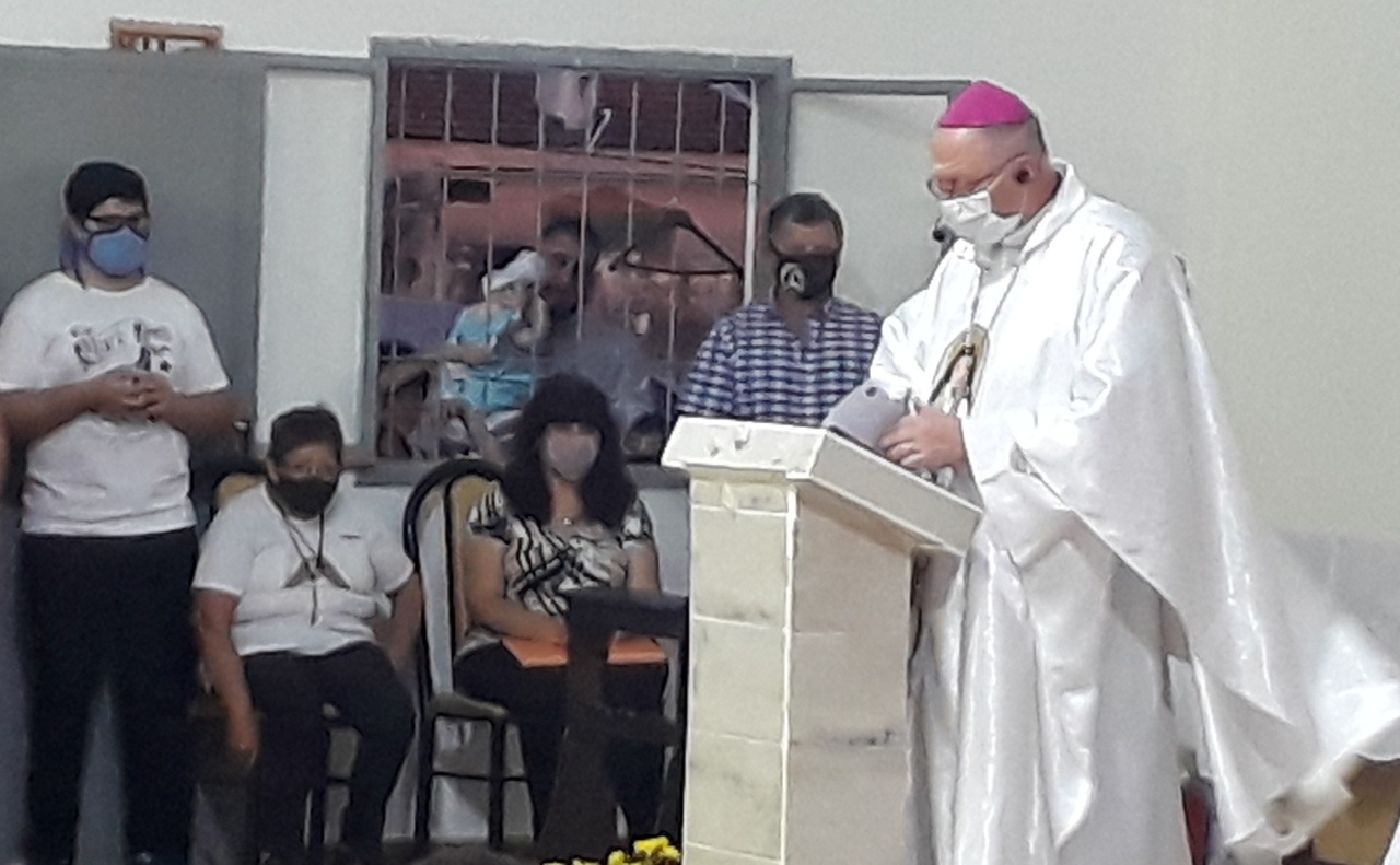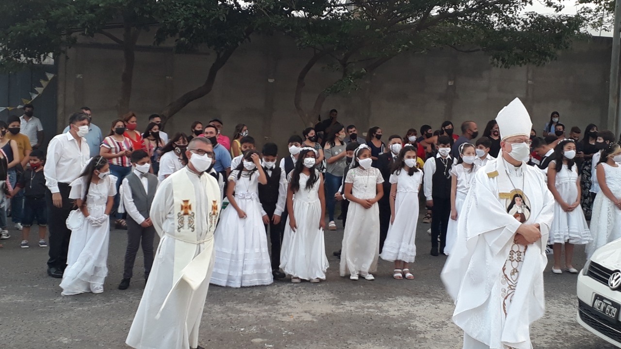 Resaltó que los chicos “hoy van a tener su primera Eucaristía; reciben en su corazón el primer encuentro vivo con Jesús, que es el Hijo de Dios”, por cuya “muerte y resurrección hoy estamos acá, y los cristianos somos los testigos de la muerte y resurrección de Jesús. Este templo material nos va a recordar que en cada iglesia doméstica se alabe y se bendiga a Dios”.
