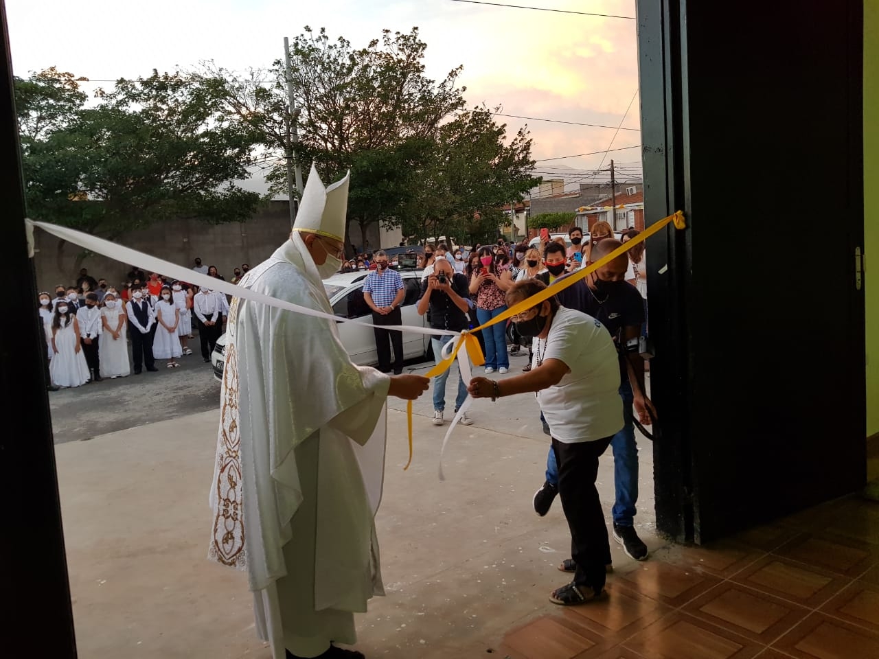 Seguidamente, se procedió al corte de cintas, que estuvo a cargo del Obispo Diocesano y de la Sra. Lidia Yapura, en representación de los vecinos de ese amplio sector del sudoeste de Capital.