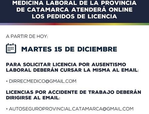 Con la finalidad de optimizar y dinamizar los trámites, además de cuidar y prevenir a quienes deban obtener o realizar trámites referidos a licencias por ausentismo laboral o accidentes de trabajo se estableció el correo electrónico como único canal de inicio, recepción y devolución de pedidos.