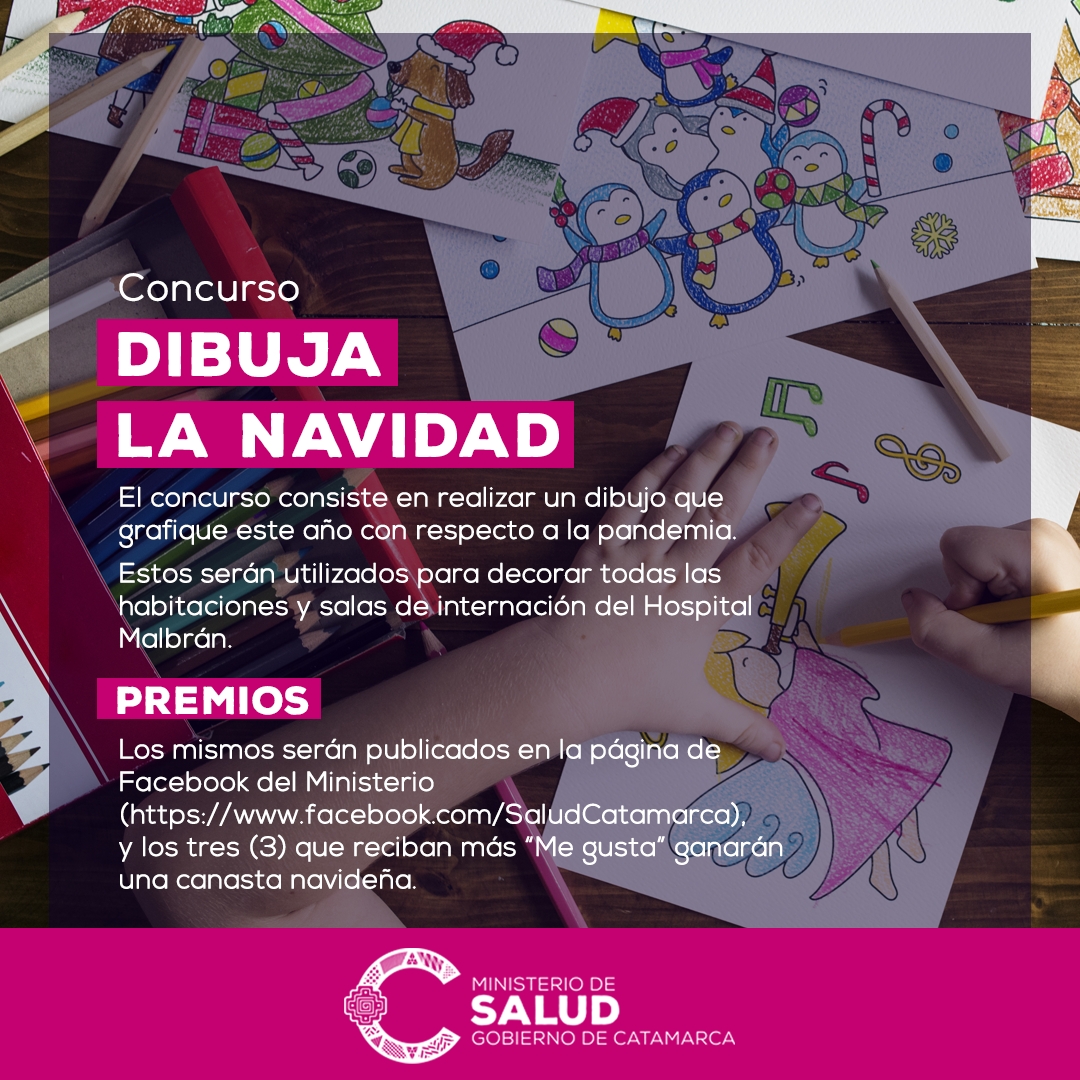 Los mismos serán publicados en la página de Facebook del Ministerio (https://www.facebook.com/SaludCatamarca), y los tres (3) que reciban más “Me gusta” ganarán una canasta navideña. se dividirán categorías según las edades de los participantes.