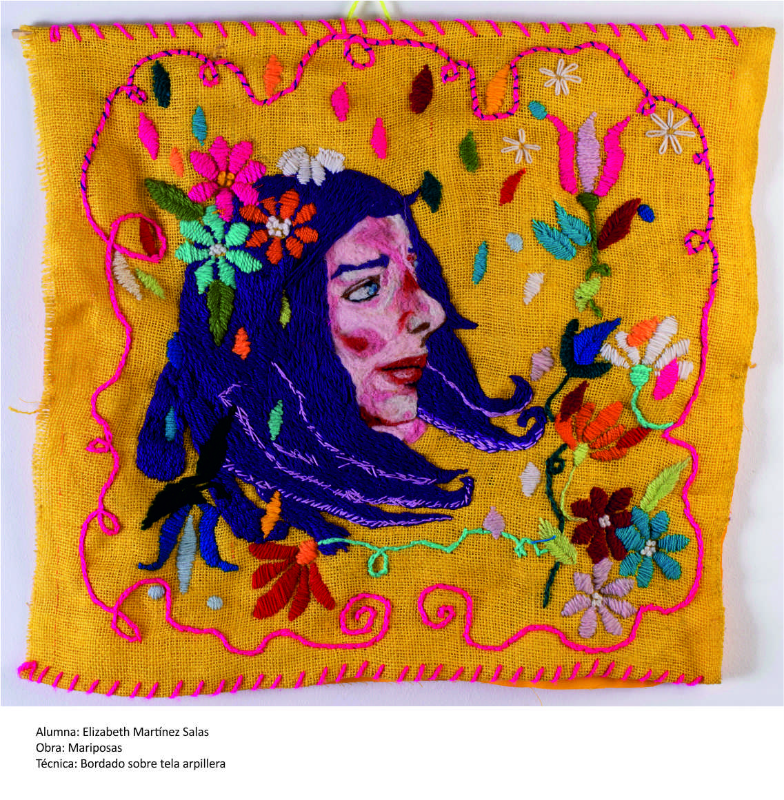 "El arte textil permite expresar con hilos y materiales textiles una diversidad de obra que va desde lo bidimensional hasta lo tridimensional. Su ductilidad permite dibujar, bordar, esculpir volúmenes por nombrar algunas de las tantas técnicas que se utilizan en esta expresión y que dan como resultado una variedad de obra fascinante. De este modo las fibras se convierten en material de expresión y se transforman para adquirir lenguaje propio", asegura la artista al presentar la muestra.
