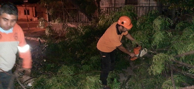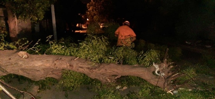 Personal de Defensa Civil y de la empresa EC SAPEM debieron trabajar en horas de la madrugada para retirar los árboles caídos y restablecer el servicio de energía eléctrica.
