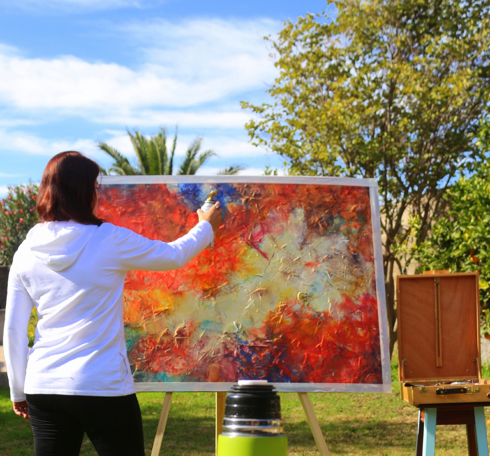 Contemplar un cuadro en el que se use esta técnica es una experiencia fascinante. Por eso recalca que, además de la búsqueda de movimiento, en sus cuadros persigue "la profundidad visual, ver toda la evolución de la obra, cómo se han trabajado las capas y la historia que se ha creado en cada una, el color vibrante como generador y transmisor de energía".