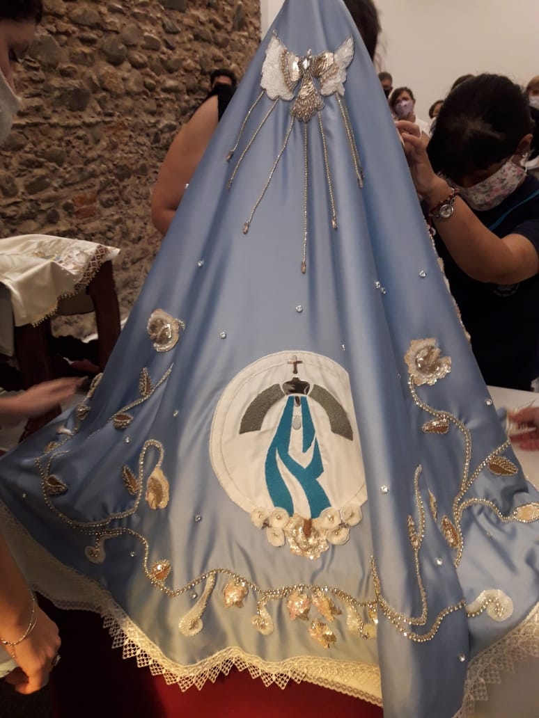“El Manto es un ramo de flores, que los hijos regalan a su Madre con motivo de los 400 años en el marco del Año Mariano Nacional. Cada puntada lleva impresa la oración de petición o acción de gracias. Madre, aquí estamos reunidos para entregarte este ramillete de flores”, expresaron con emoción quienes llevaron adelante esta labor con entusiasmo, dedicación y mucho amor a la Reina del Valle.
