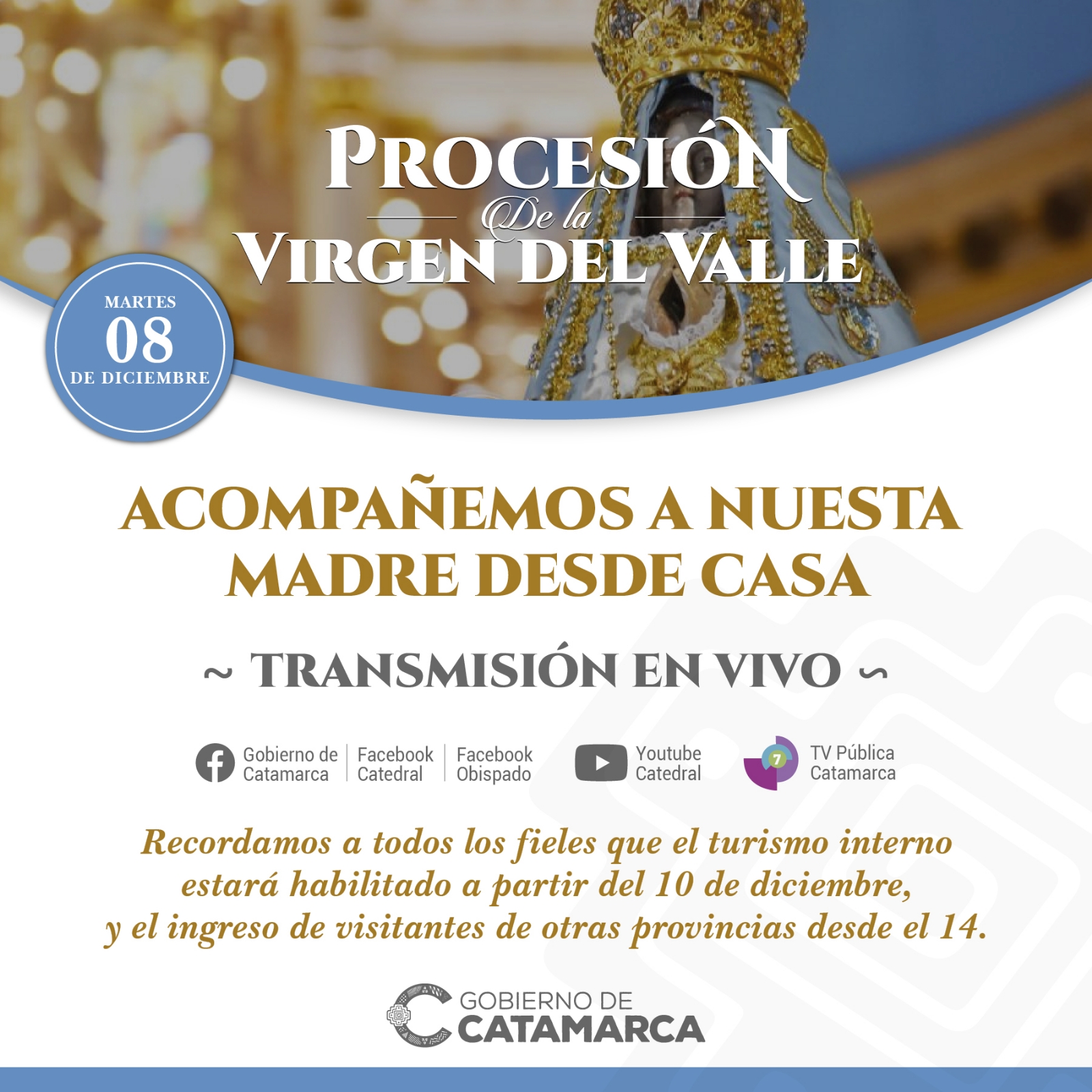 Por ello se invita a todos los fieles a seguir la transmisión en vivo de la Procesión de la Virgen del Valle a través de los siguientes medios: