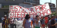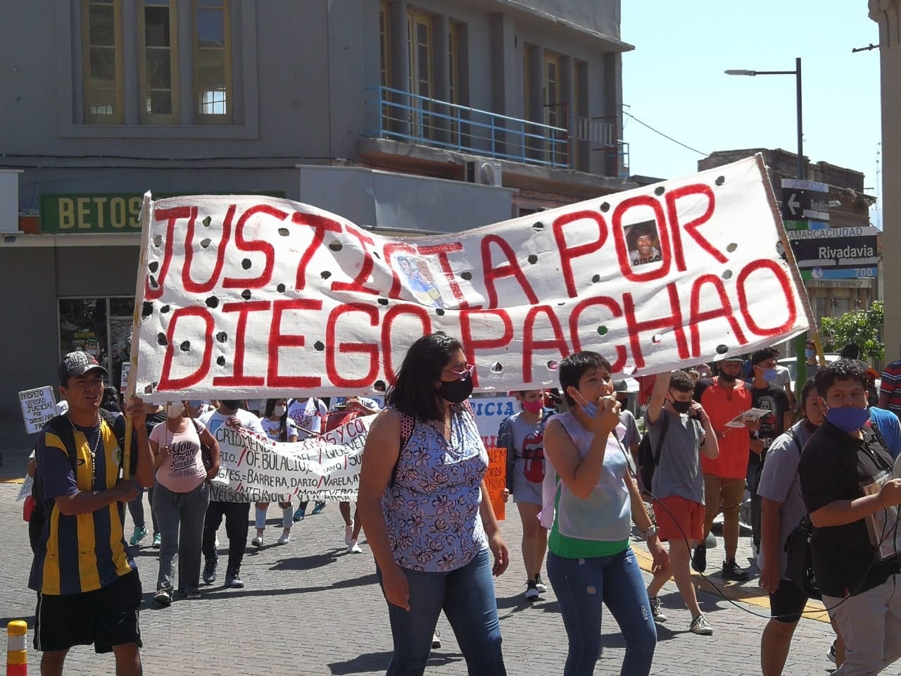 Por avenida Güemes, se movilizan hasta tribunales los familiares de Sebastián Chanampa. La protesta es porque el homicida Walter “Rulo” Barrera, después de una intervención quirúrgica, fue enviado a su casa con prisión domiciliaria.