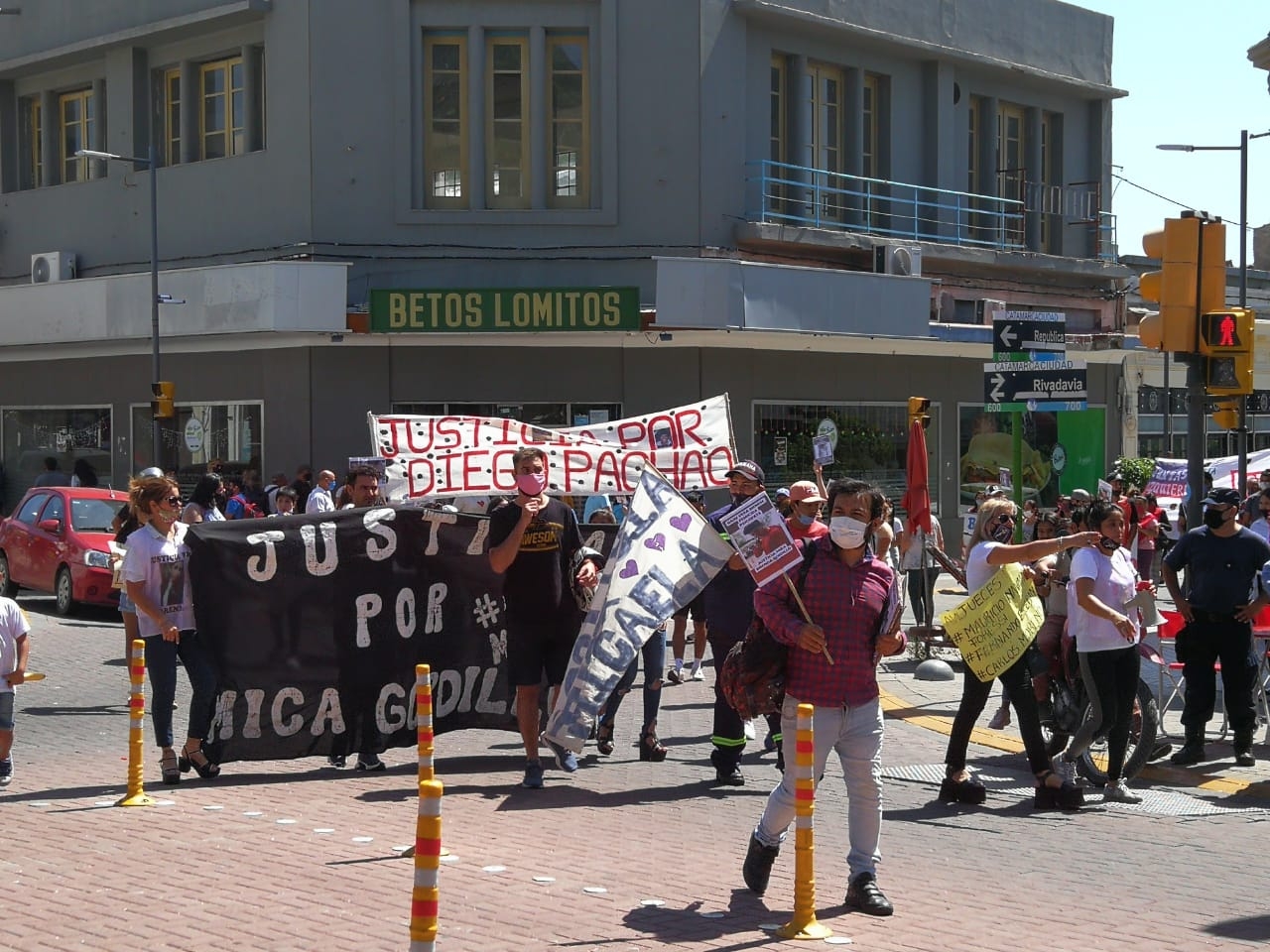 En calle Junín, frente a tribunales, familiares y amigos de Brenda Micaela Gordillo piden justicia por el asesinato de la joven. Después trasladaron la marcha por las calles de la ciudad hasta desembocar en la plaza principal.