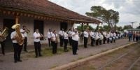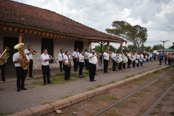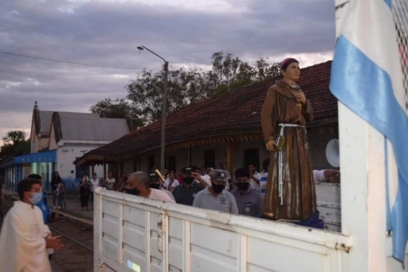 Recreando la travesía en tren desde Alta Córdoba a la Estación Recreo, un vehículo cedido por el Ferrocarril Belgrano Cargas, traslado por las vías del tren, una Imagen de Fray Mamerto Esquiú, que llegó a Recreo a las 20.30 hs. custodiada por el Párroco Domingo Cháves.