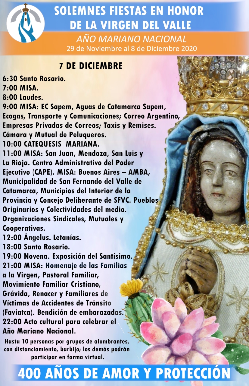 11:00 MISA: Buenos Aires – AMBA, Municipalidad de San Fernando del Valle de Catamarca, Municipios del Interior de la Provincia y Concejo Deliberante de SFVC. Pueblos Originarios y Colectividades del medio. Organizaciones Sindicales, Mutuales y Cooperativas.