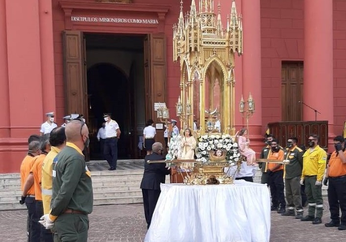 “La intención principal de esta tarde de oración junto a usted, Madre, será para pedir por el fin de esta pandemia, por el eterno descanso de las victimas del Covid19, por las familias que sufren de cerca esta situación y para pedirte luz, creatividad y caridad para solucionar las consecuencias espirituales, físicas y económicas que dejará este flagelo inesperado que estamos viviendo”, expresaron los guías al comienzo de este acto solemne.