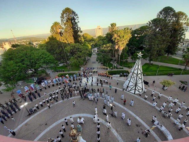 “Con todas las banderas de la Patria presentes, con todos los corazones esperanzados por un tiempo de paz y amistad social, cantemos el Himno Nacional Argentino”, invitaron luego. Tras lo cual se entonó el Himno de Catamarca recordando a su autor, el profesor Gerván Varela que este año partió a la Casa del Padre. Ambos Himnos fueron interpretados por la Banda de Música de la Policía de la Provincia.