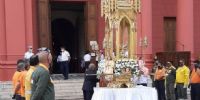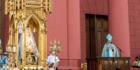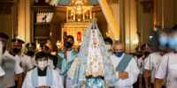 Con el repique de las campanas, el canto “Adiós Reina del Cielo”, los pañuelos en alto, las lágrimas en los rostros y la alegría de saber que Ella continúa caminando junto a sus hijos, la Sagrada Imagen fue transportada hacia su trono permanente en el Camarín.