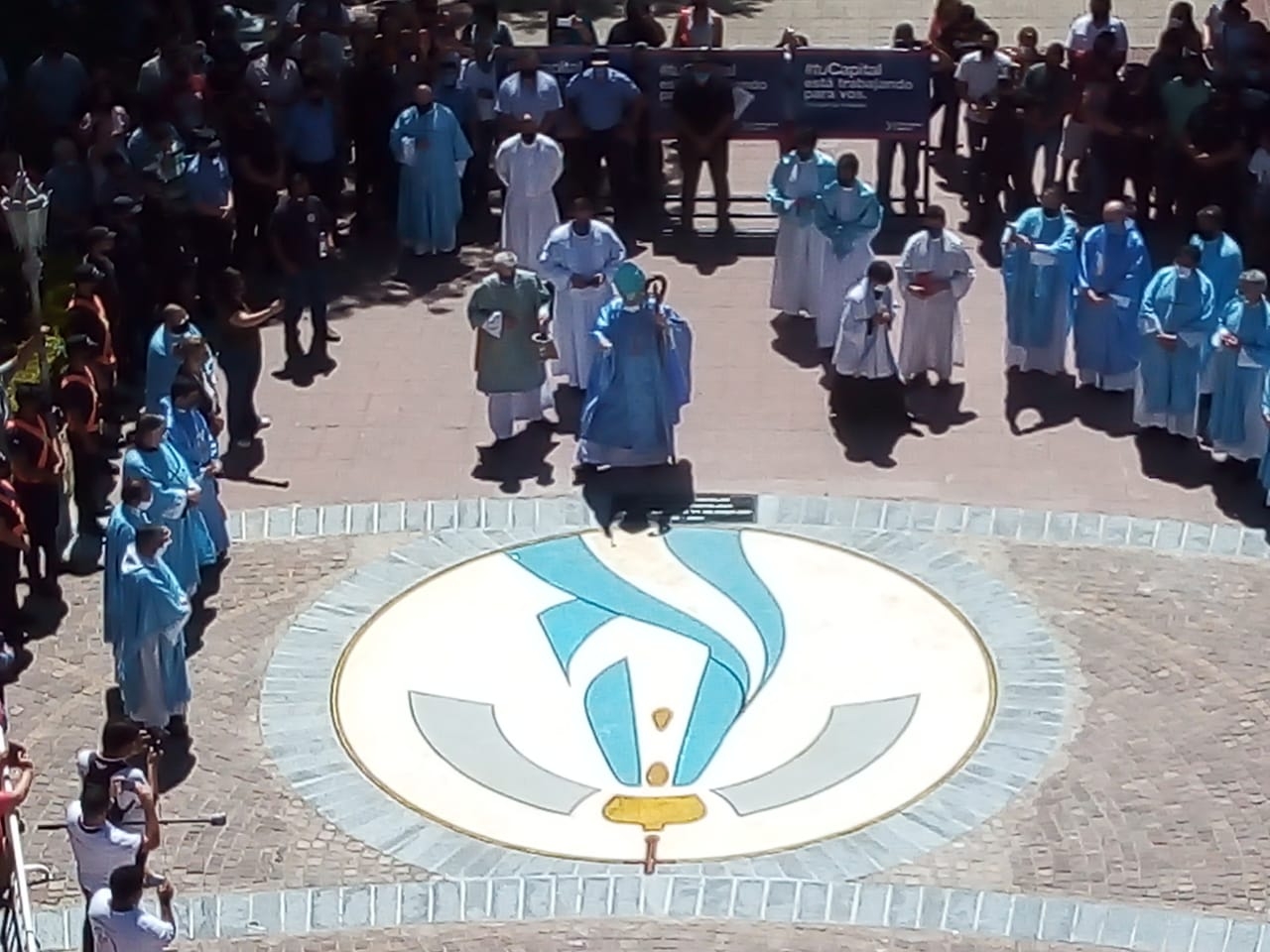 Concluida la Eucaristía, el Obispo Diocesano junto con los sacerdotes concelebrantes se trasladaron hasta el Paseo de la Fe, donde se llevó a cabo la bendición del Logo del Año Mariano Nacional construido en el Paseo de la Fe, en memoria del Año Jubilar por los 400 años de la presencia de la Madre del Valle entre nosotros.