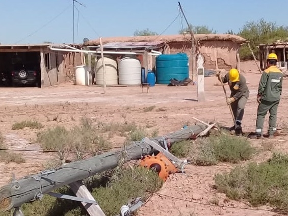 Ayer, las cuadrillas se abocaron a restablecer el servicio en los parajes de San Agustín, El Chaguaral y Las Latas, donde se vieron seriamente afectados por la caída de 5 postes de Media tensión y además uno de ellos portaba la Subestación Transformadora que abastecía de energía a las familias del lugar.