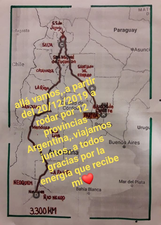 Pronto a celebrar un año más de vida, oriundo Concordia, provincia de Entre Ríos, con cabello color nieve y barba de sabio, tiene tres hijos y tres nietos a los que siempre lleva presentes, y en cuanto la señal se lo permite, les envía mensajes para decir que ya cumplió una de sus tantas metas junto a su mejor amiga, la bicicleta.